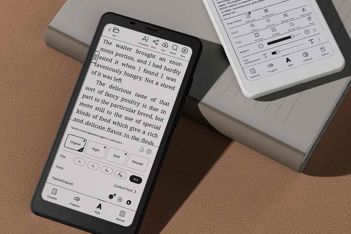 Il design elegante e funzionale è completato da dettagli premium come lo sblocco con impronta digitale sul tasto di accensione, la rotazione automatica dello schermo e una finitura superficiale anti-impronta e idrorepellente. La possibilità di leggere, annotare e navigare in mobilità, con un dispositivo che non affatichi gli occhi e assicuri una leggibilità perfetta anche sotto la luce diretta del sole (a differenza degli schermi LCD/OLED), ne fa un compagno digitale di nuova generazione.