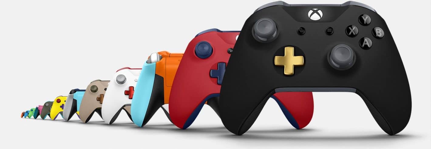 Quello che vedete qui sopra è il mio controller, o meglio, quello che ha costruito ieri sera mio figlio, prendendo il comando della selezione dei colori. Io ne volevo uno molto banale e molto nerazzurro, per sfidare il mondo intero a FIFA 18 con i colori dell’Atalanta nelle mani, ma la situazione ci è un po’ sfuggita divano e non so cosa abbiamo costruito esattamente, ma abbiamo messo a dura prova la capacità di Microsoft di assortire i colori.